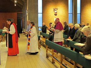 On Sunday January 22, the VEC celebrated the annual Vigil for Christian Unity hosted this year at St. Michael’s Chapel on the campus of St. Michael’s College in Colchester. The theme of this year’s service was reconciliation. The prayer service drew upon the image of walls of separation and division that exist between Christian communities, created by the”stones” of realities like “hate, contempt, false accusation, and pride.” Father Richard Berube, SSE spoke eloquently of the need for unity within our common faith in Christ and encourage those present to work diligently for reconciliation. Following the service, refreshments and fellowship were hosted in the Edmundite residence.